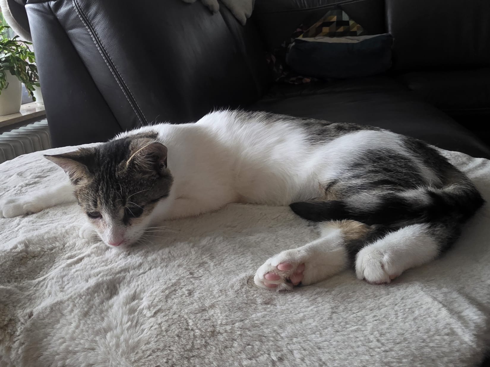 Mittlerweile ist er ein energiegeladener Kater, der für sein Leben gerne tobt und spielt. In seinen wohlverdienten Spielpausen kuschelt er super gerne.
