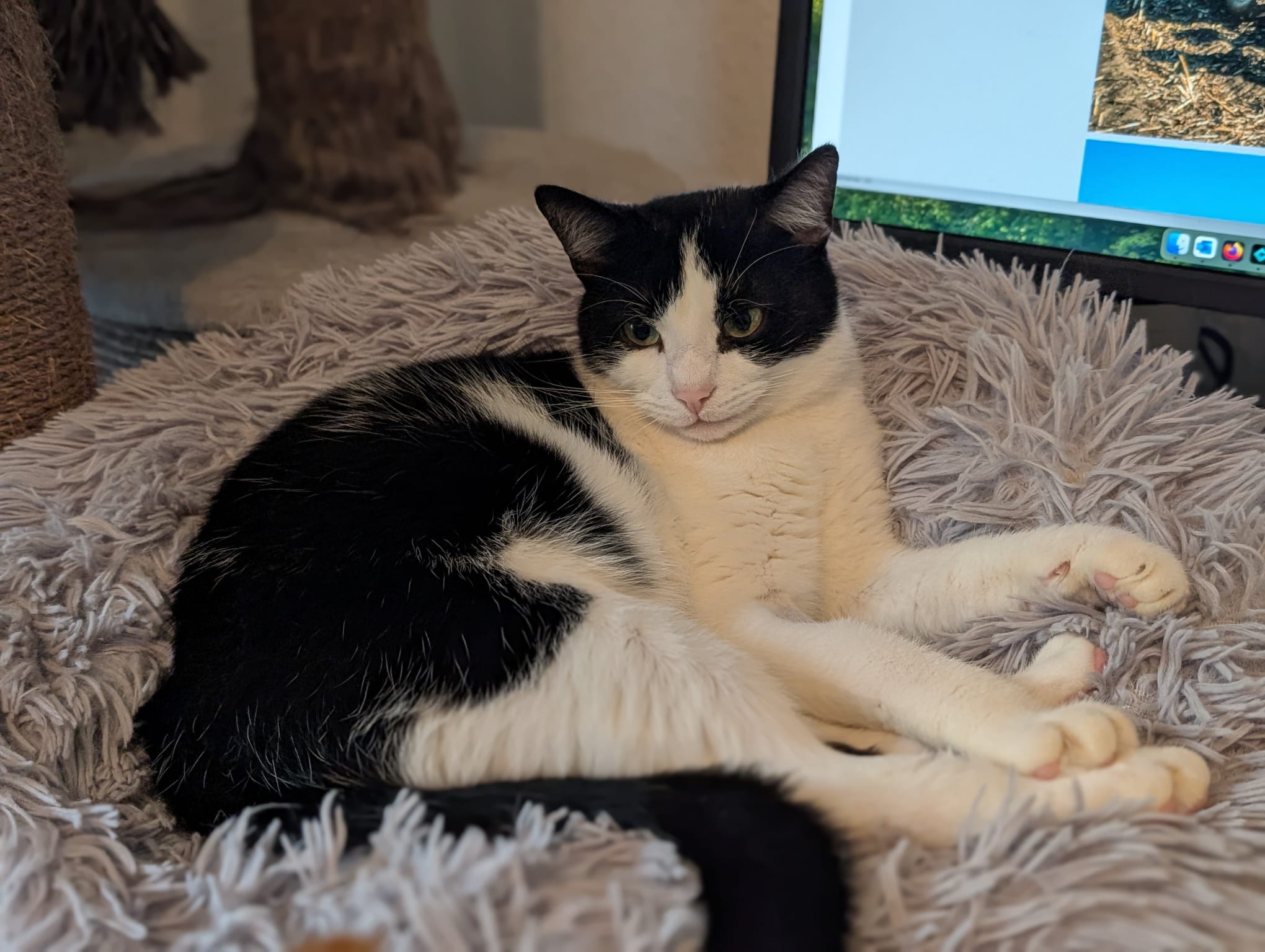 Auf seiner Pflegestelle lebt er mit Merlot, der gerne auch mal versucht, ihn etwas zu provozieren. Hier ist er super nachsichtig und beschwichtigt ihn oder geht sonst einfach weg — wer braucht schon unnötigen Stress?