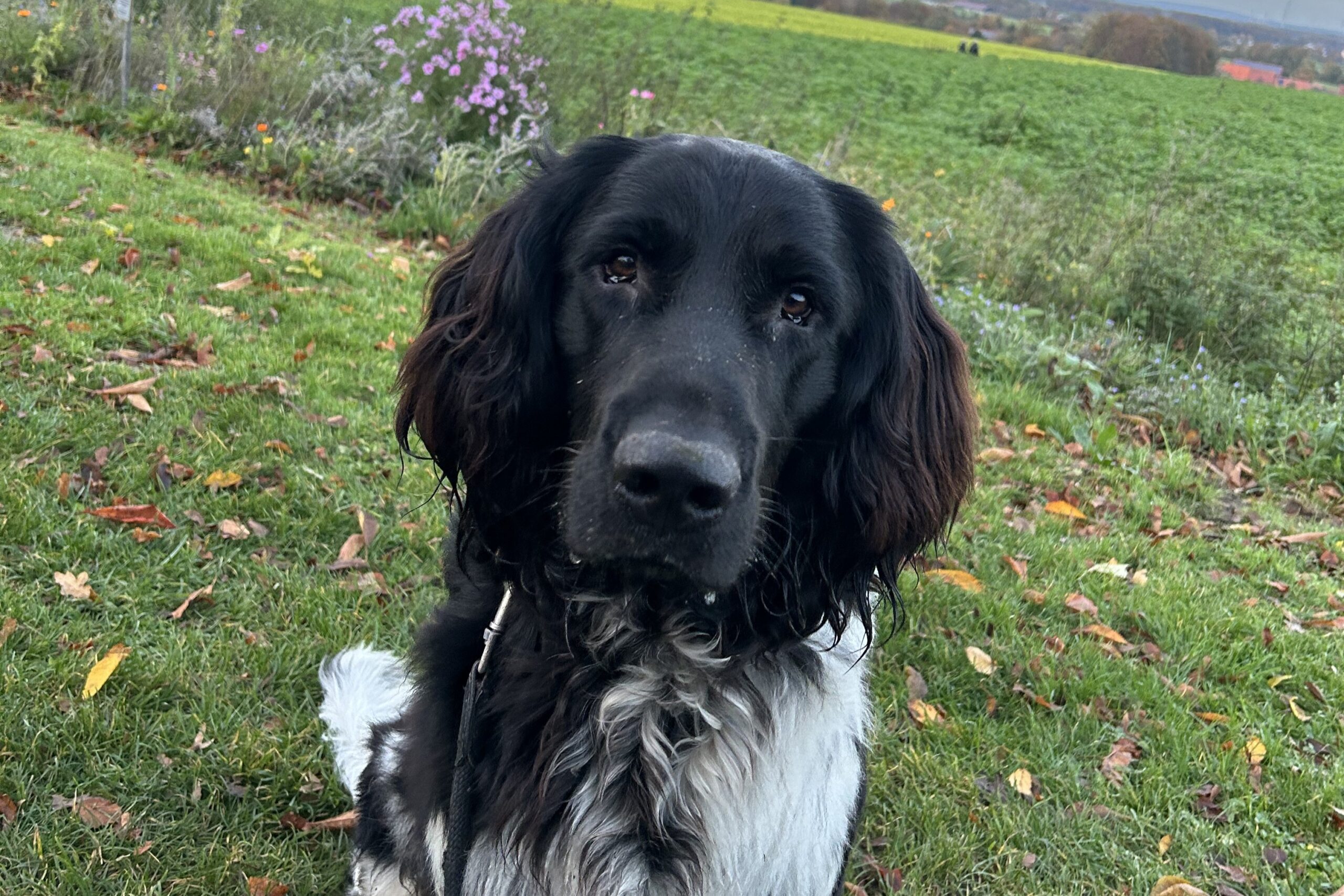 Max wird im Jan­u­ar 2026 drei Jahre alt, ist ein rein­ras­siger Großer Mün­ster­län­der und kas­tri­ert. Als Welpe zu uns gekom­men, lebt er seit­dem mit­ten im Geschehen bei uns auf dem Hof.