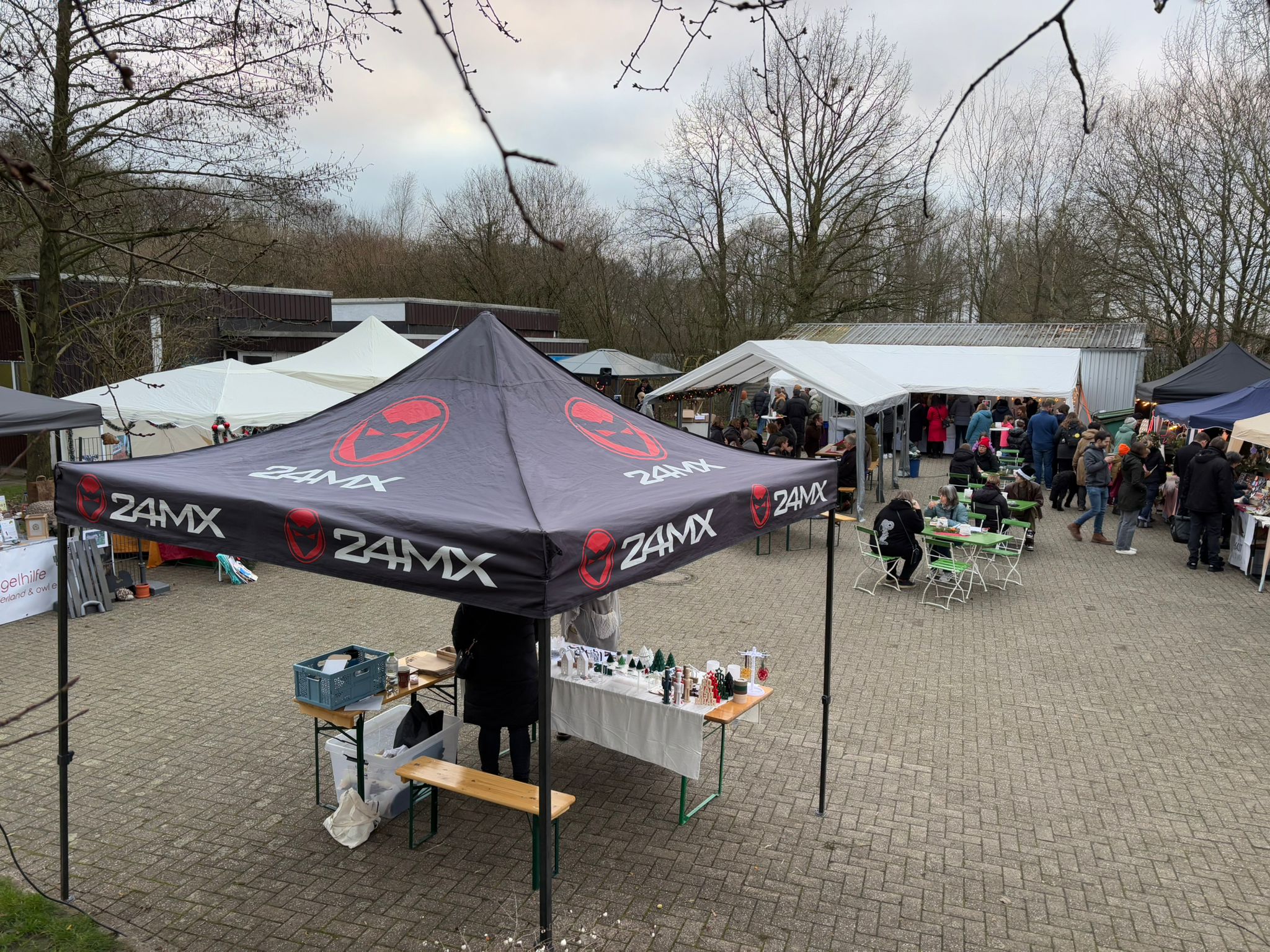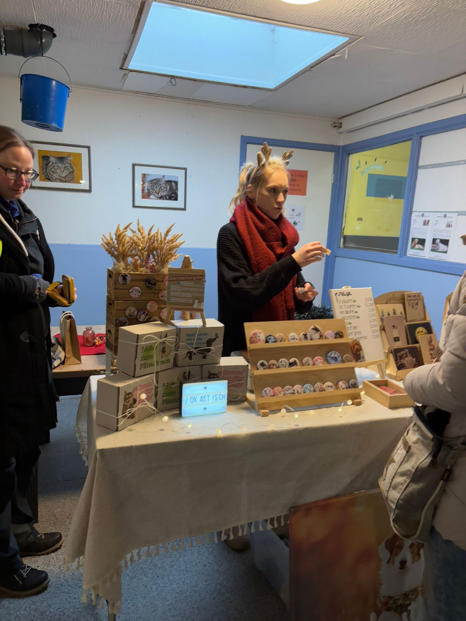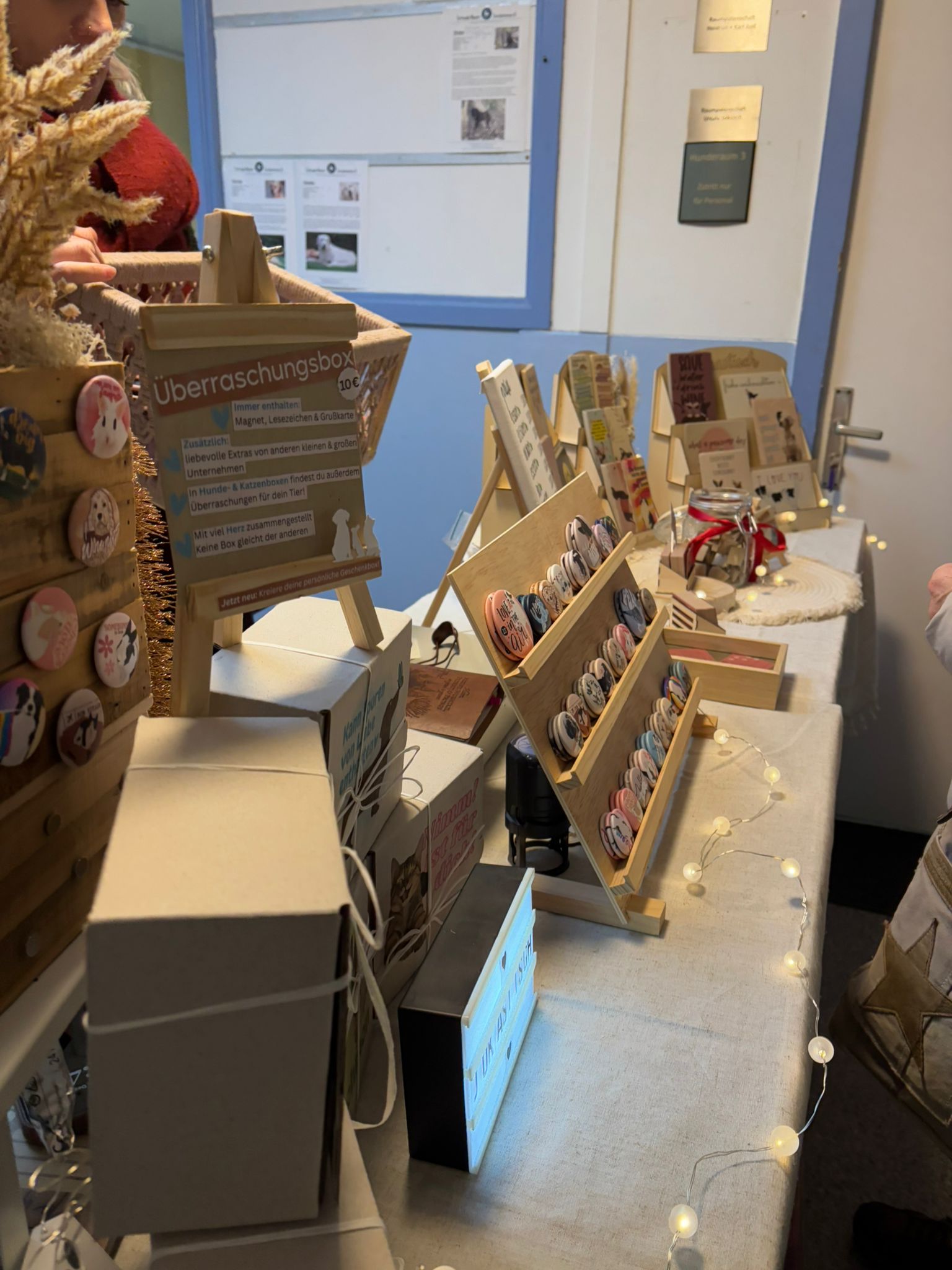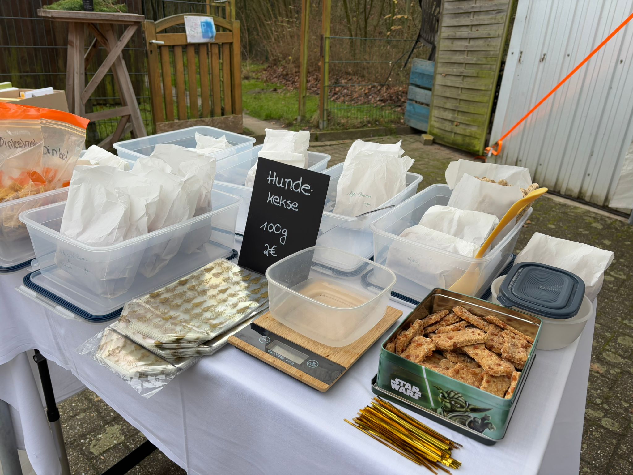 In diesem Jahr haben sich wieder hun­derte Tier­fre­undin­nen und ‑fre­unde bei uns auf dem Tier­heimgelände einge­fun­den, um sich bei Glüh­wein, Pun­sch, Waf­feln und Crêpes in Wei­h­nachtsstim­mung brin­gen zu lassen: Mit rund 300 Besucher:innen war’s wirk­lich rap­pelvoll an den Stän­den. Da wurde gestöbert und geshoppt — ob Selb­st­gemacht­es, Geschenkideen von kleinen Brands, Bek­lei­dung oder Tierbe­darf im Sec­ond Pfote Shop. Oben­drein kon­nte man an mehreren Infos­tän­den viel über den regionalen Tier­schutz erfahren.
