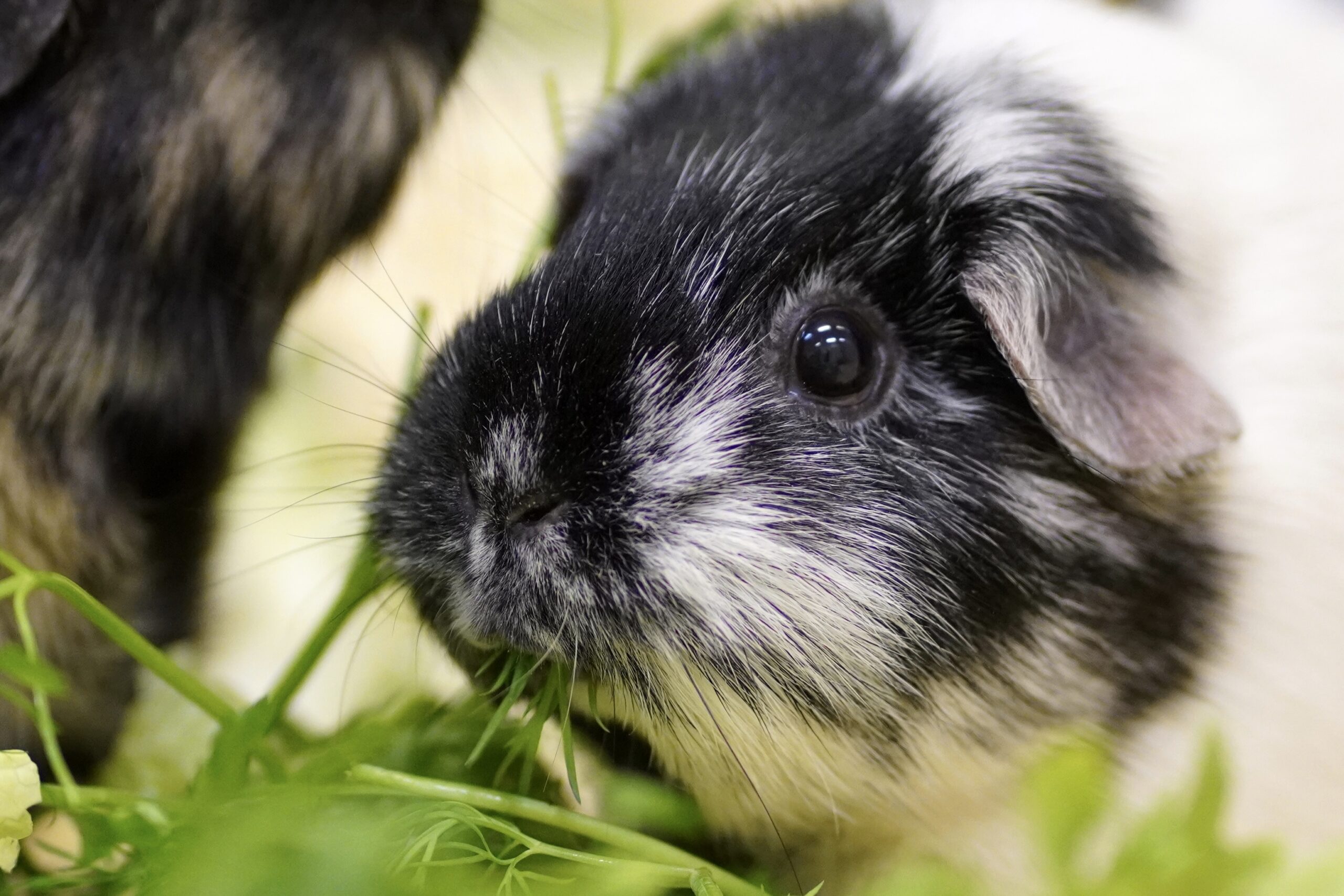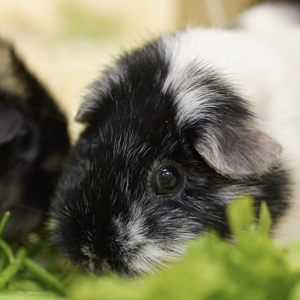 Oreo kam zusammen mit Lenny und Lienchen nach einer Haltungsaufgabe zu uns ins Tierheim. Die ersten Tage war sie noch etwas zurückhaltend, taute dann aber schnell auf und zeigt sich inzwischen sehr zutraulich und neugierig. Sie ist etwas zurückhaltender als ihre Freundin Lienchen, liebt es aber ebenso, in einem Heubett zu kuscheln.