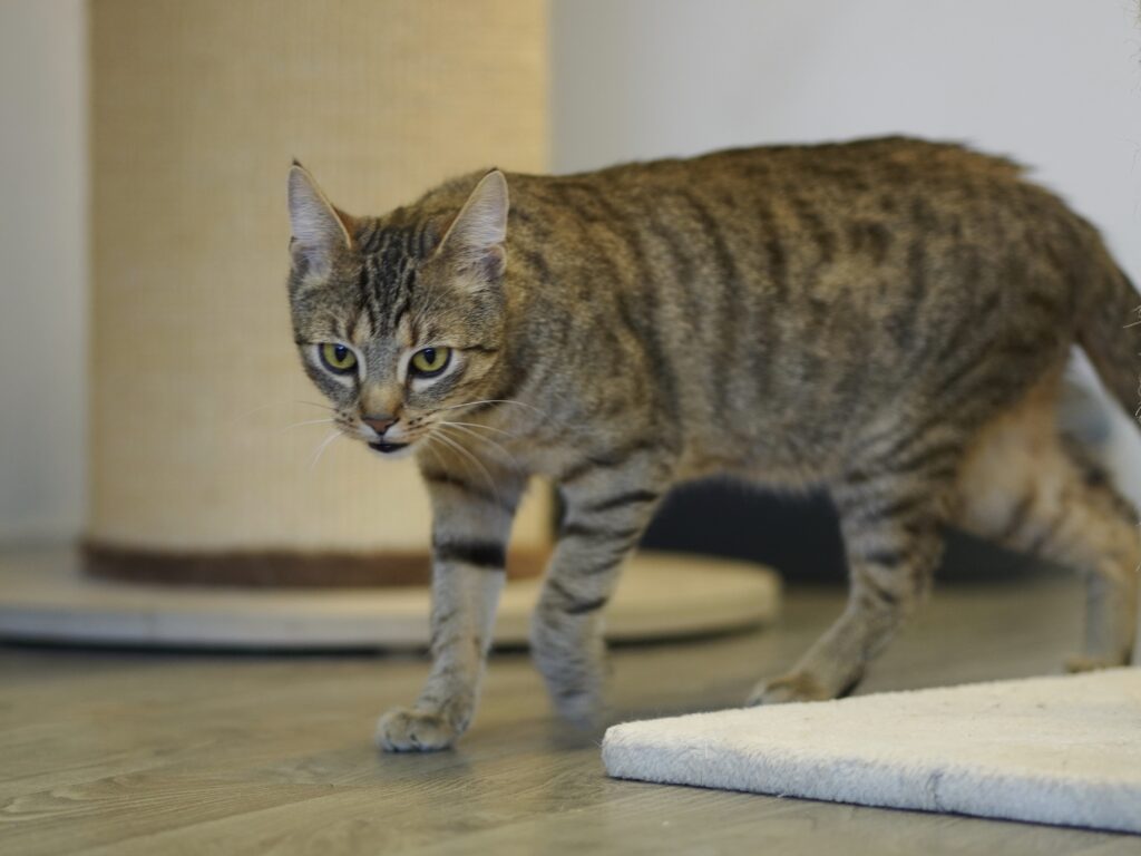 Sie wurde gemeinsam mit ihrem Kitten Fusilli und Kater Bruno bei uns abgegeben. Farina kennt das Zusammenleben mit Menschen und ist, wenn sie einmal aufgetaut ist, eine verkuschelte Katze, die gerne Köpfchen gibt.