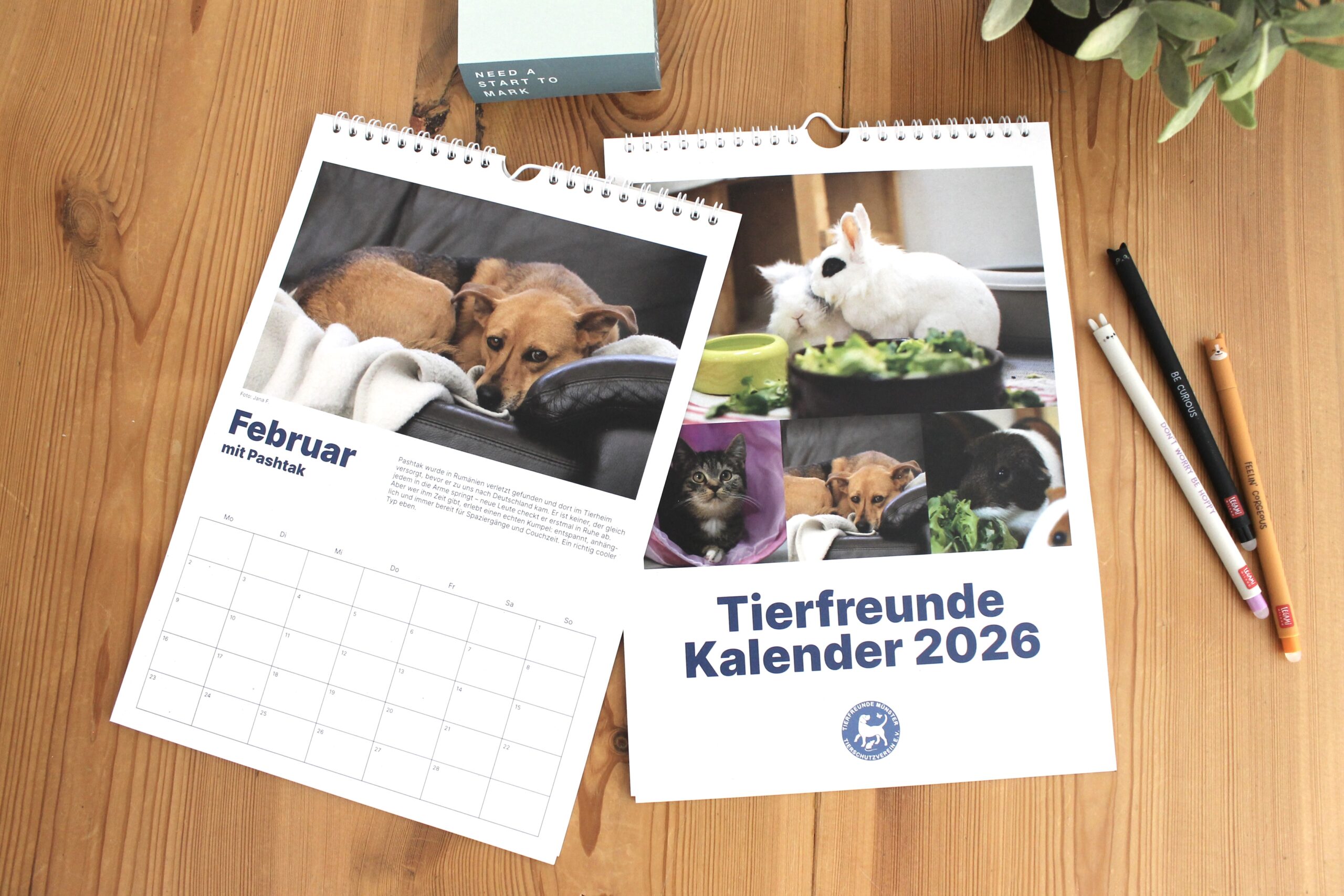 Unsere Schützlinge begleiten dich Monat für Monat durch das neue Jahr – mit dem neuen Tierfreunde-Wandkalender im praktischen DIN A4-Format. Es erwarten dich 12 schöne Fotos unserer Tierheim-Bewohner und ihre ganz persönlichen Geschichten. Natürlich bleibt auch ausreichend Platz zum Eintragen deiner eigenen Termine.
