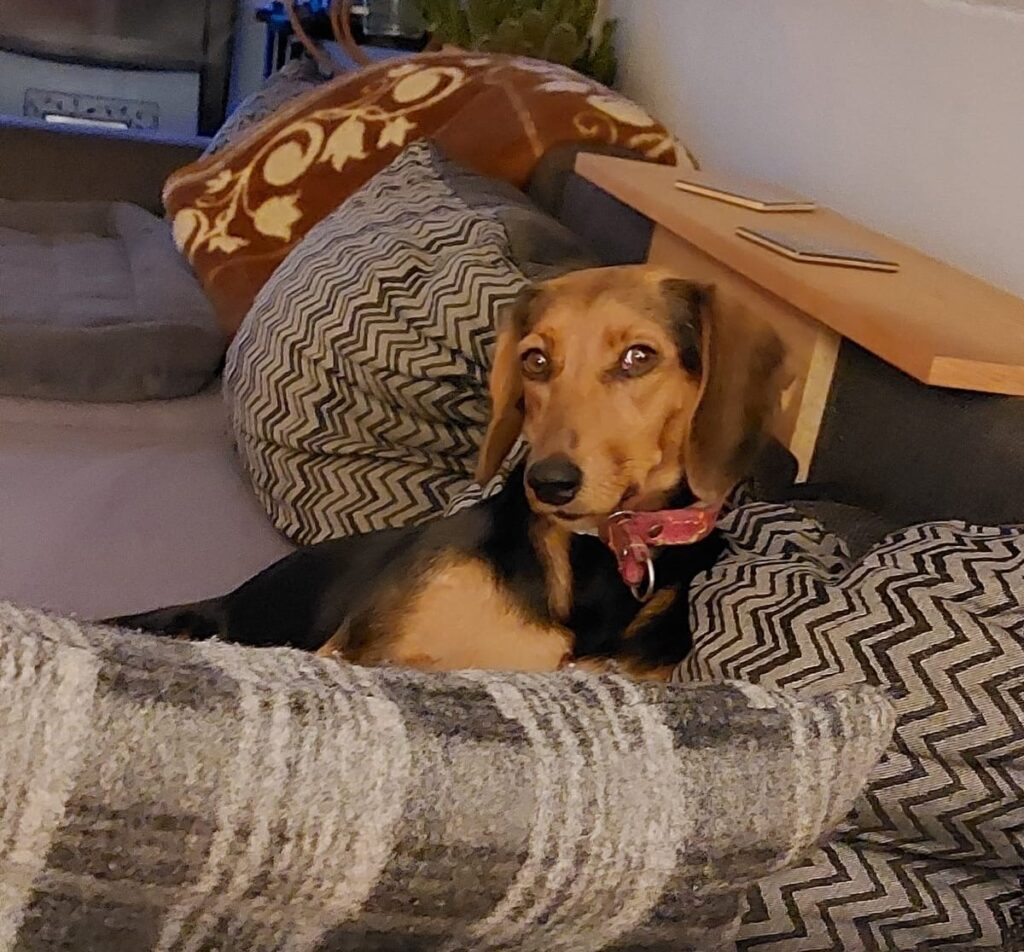 Pria ist eine kleine griechische Bracke, 12 Kilo, 2–3 Jahre alt, lustig, lebendig, verträglich, stubenrein und lernt sehr schnell. Für