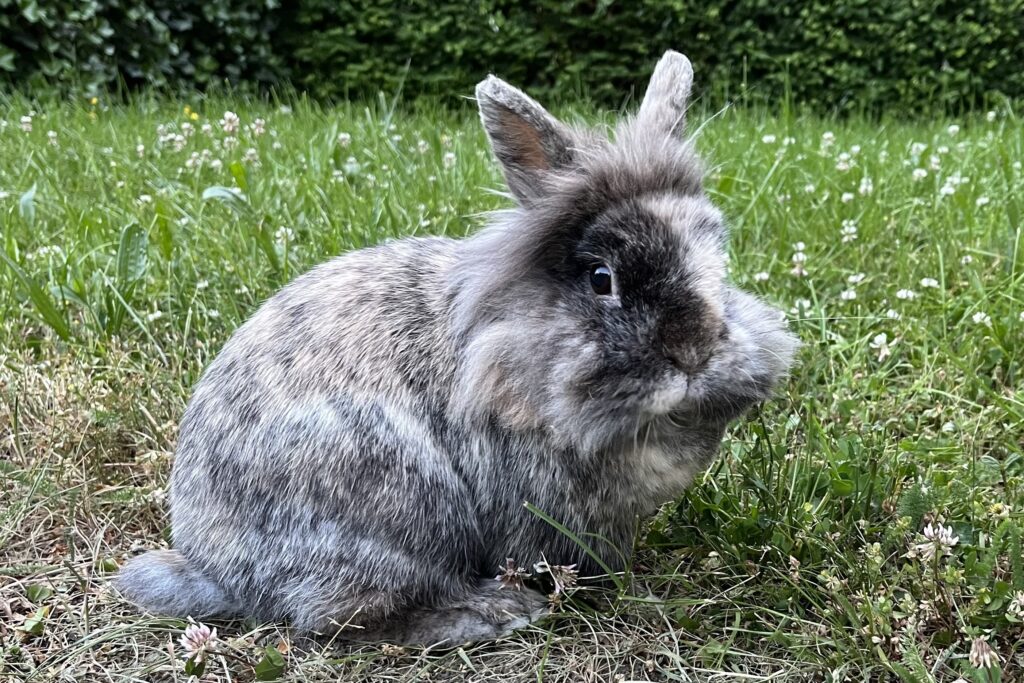 Name: Erna Rasse: Zwergkaninchen Geschlecht: Weiblich Alter: ca. 4–5 Jahre Farbe: Schwarz-gräulich mit braun/roten Nuancen Herkunft: Fundtier, 2024 aus Tierheim übernommen Charakter: Ruhig, schreckhaft, zurückhaltend, aber